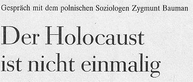 Möglichkeit des Holocaust steckt im Wesen der modernen Zivilisation.