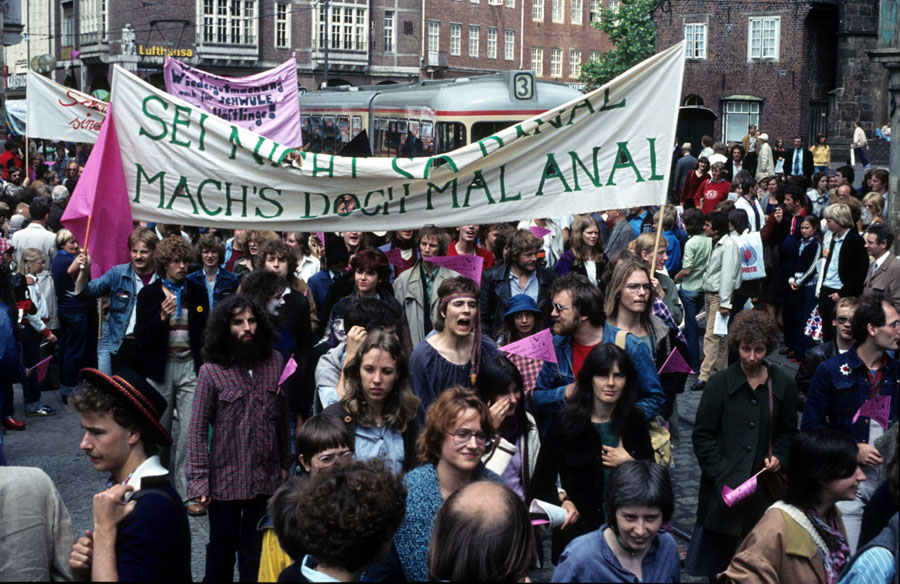 Stonewall 1979 und der Schwule Karneval in Bremen Zurück zum Inhalt Zurück zum Beginn Die einen Monat zuvor noch unter dem Motto „Stonewall“ durchgeführten Demonstrationen zum Christopher-Street-Day (CSD) sollten an die zehn Jahre zuvor stattgefundene „Rebellion“ von Schwulen und Lesben gegen eine Polizeirazzia im Stonewall-Inn innerhalb der New Yorker Christopher-Street erinnern. Sie fanden zeitgleich am 30. Juni 1979 in Stuttgart, Köln, Westberlin und Bremen statt. In Bremen firmierte diese neue Protestform unter dem Namen „Schwuler Karneval“. Die Kundgebung mit etwa 800 Teilnehmern10 mündete in einem musikalischen Happening mit Straßentheater auf dem Bremer Marktplatz und schloss mit einem Fest im Schlachthof.